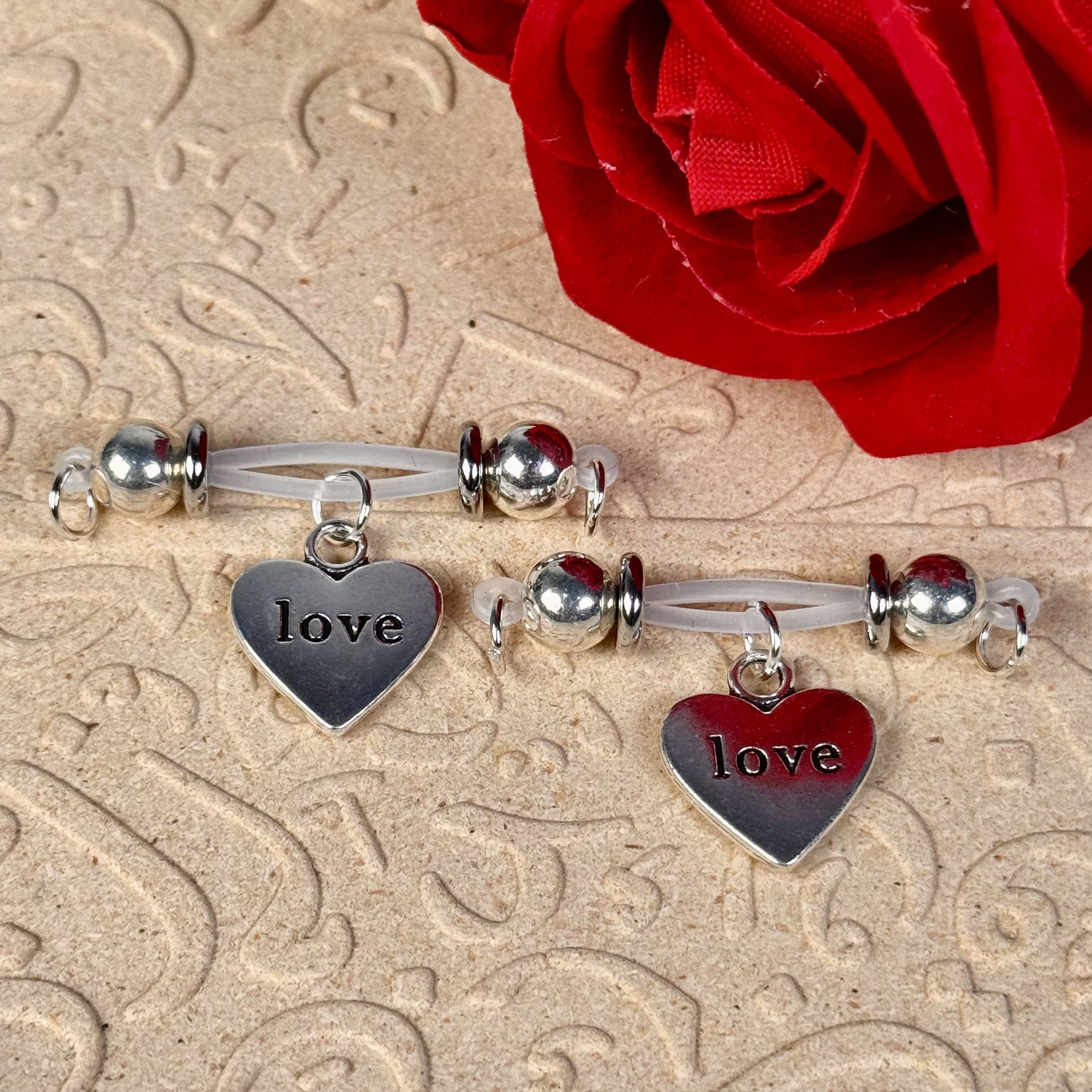 These sleek nipple accessories feature polished silver "love" heart charms, paired with smooth beads & flexible bands. Effortlessly chic, they feel gentle against skin—elevating your style with subtle luxury.