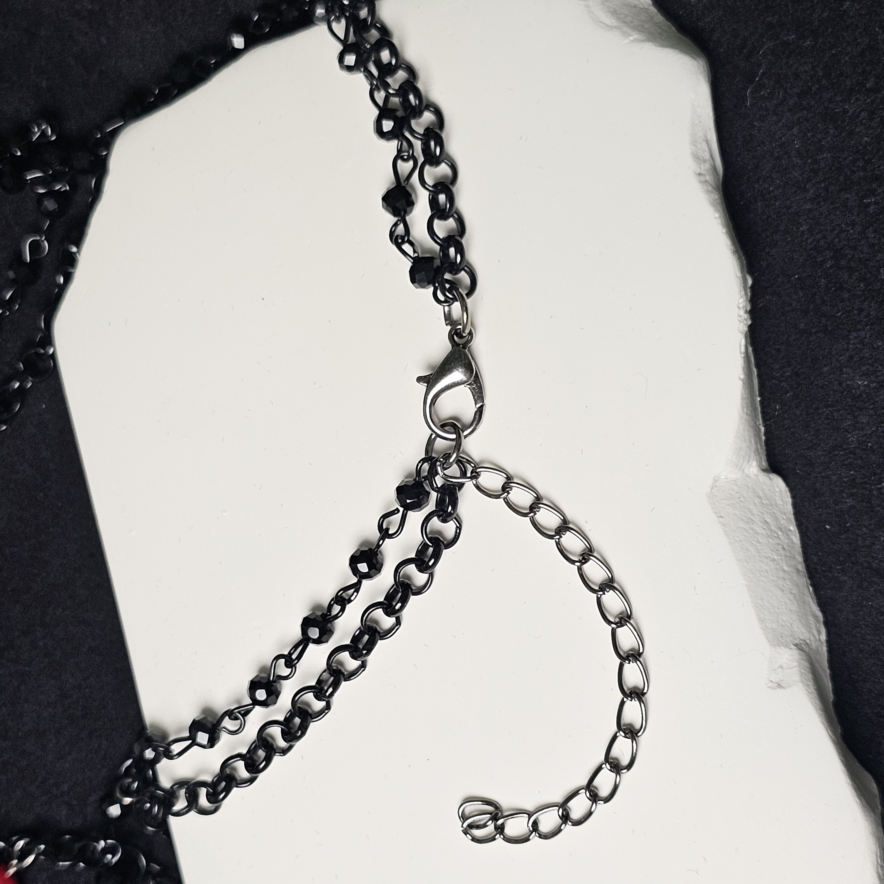The cold black chain connects the crimson beads, creating a sharp contrast in color, creating a unique style that combines boldness and elegance creates a festive atmosphere.