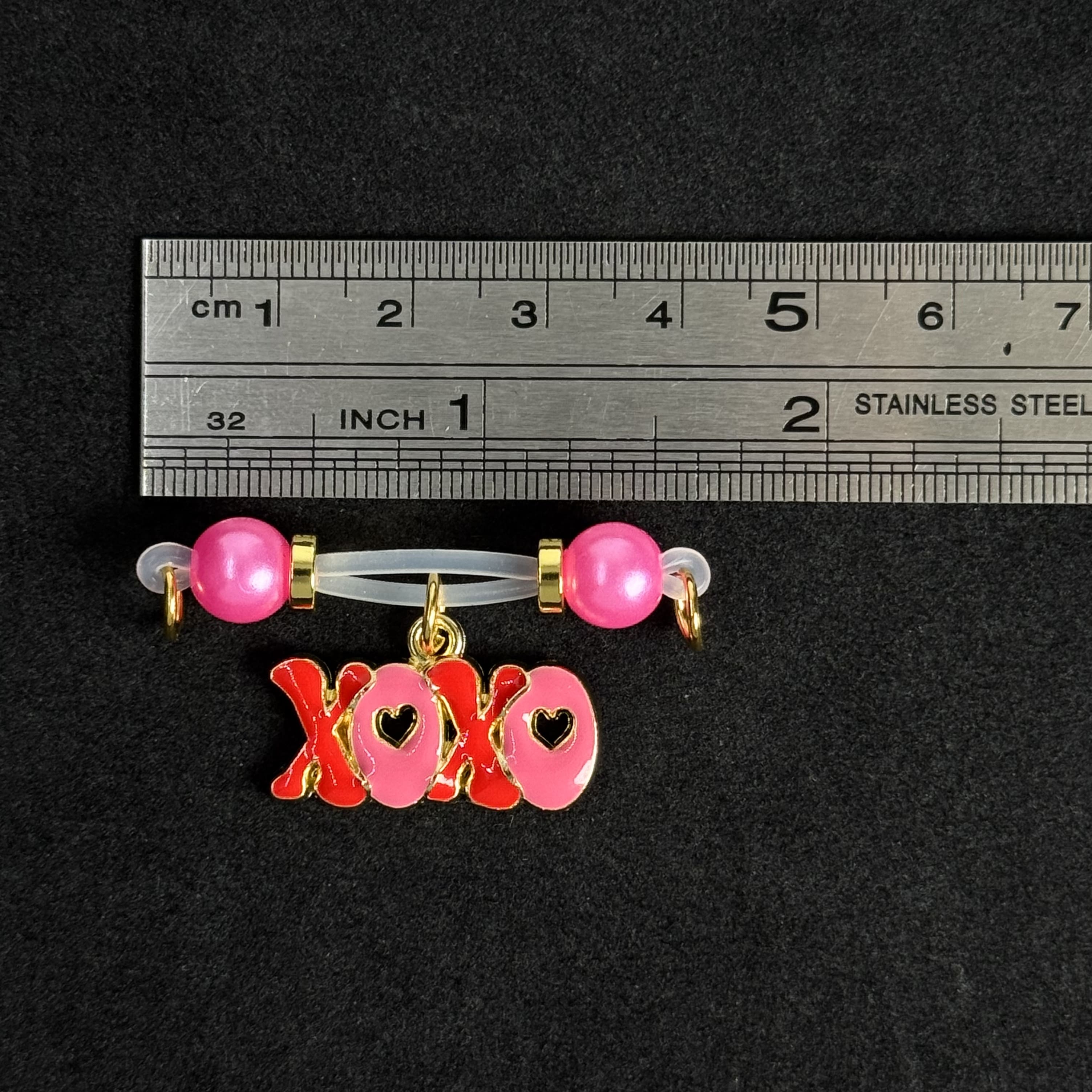 These elegant XOXO nipple clamps feature smooth silicone bands, lustrous pink beads, and a playful enamel charm, delivering a gentle, comfortable hold for a luxuriously tender experience.