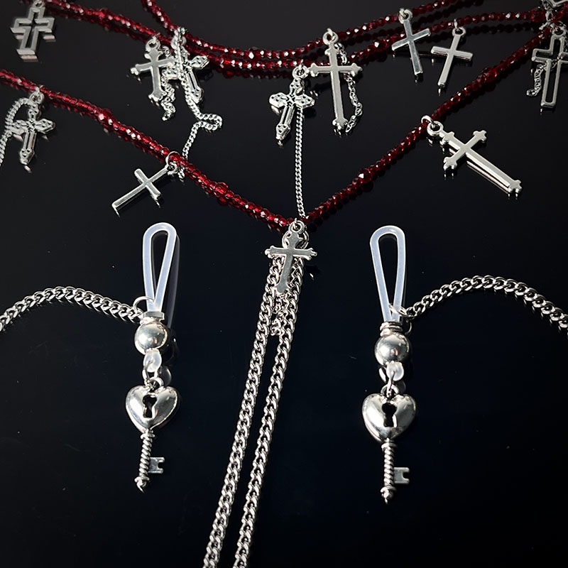 These adjustable false nipple rings are crafted with metal cross and heart-key elements, blending dark gothic style with niche sexiness. They balance bold individuality with exquisite details, the metallic texture and unique shape creating a distinctive charm. The smooth surface and retro design create an avant-garde yet mysterious accessory style. The adjustable design ensures comfort while adding an artistic allure and understated sexiness, making it an eye-catching item for those who appreciate niche styles and showcase their unique taste. ✨