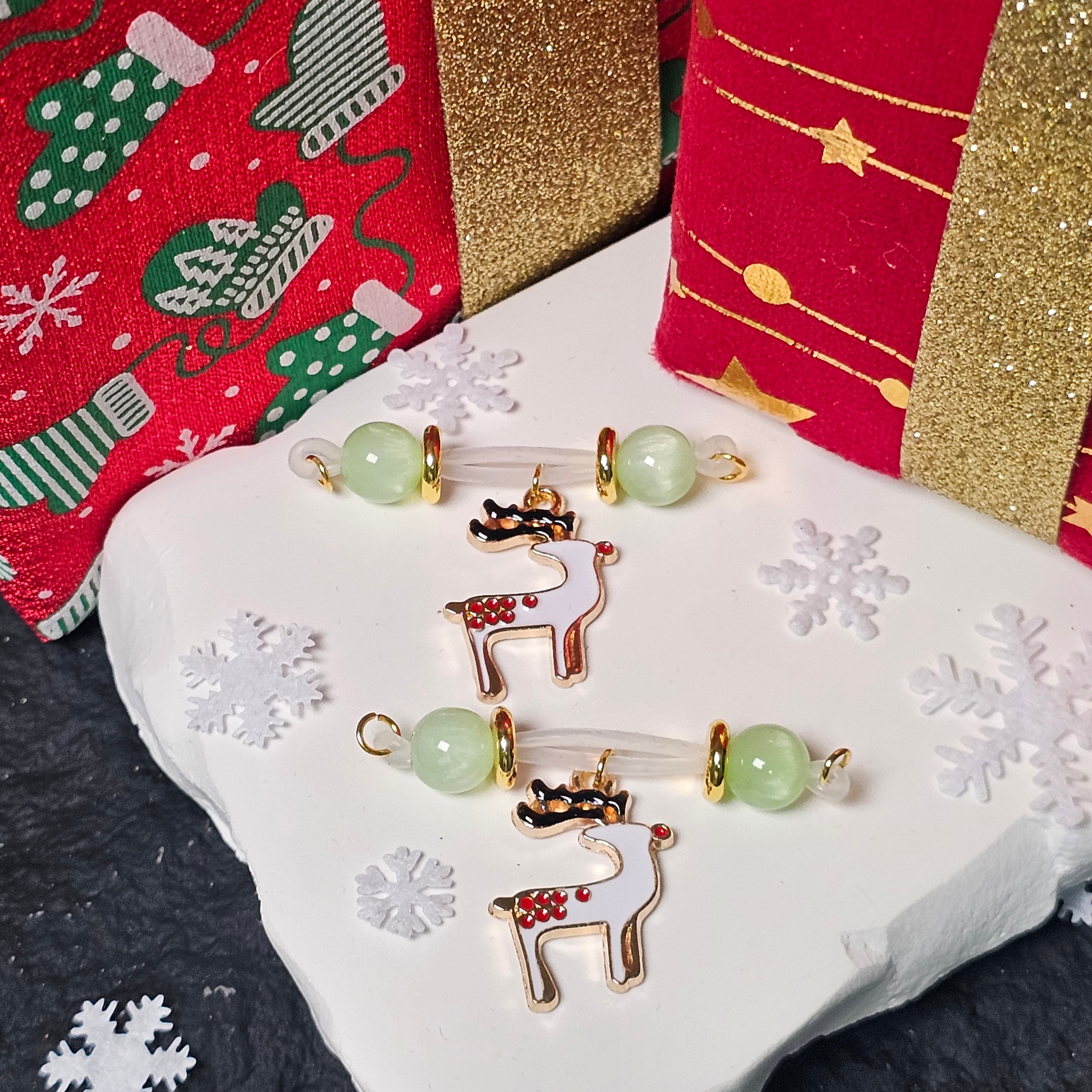 Add a touch of magic to the holidays with these adjustable barbell-style nipple clamps. Embellished with light green beads and an elegant white reindeer pendant, these clamps exude a sophisticated, wintry vibe. The screw-type adjustment allows for precise control of pressure, ensuring both comfort and increased stimulation. The light green beads exude a fresh, festive glow, while the white reindeer pendant adds a touch of Christmassy winter whimsy. Perfect for Christmas role-play, romantic surprises, or as a fun holiday gift, these clamps are made of durable, safe metal with a smooth finish, balancing fashion with practicality. Whether as a gift for a partner or a small treat for yourself, these reindeer-themed nipple clamps will make your holidays unforgettable. Add festive charm and fun to intimate moments and make this Christmas shine.