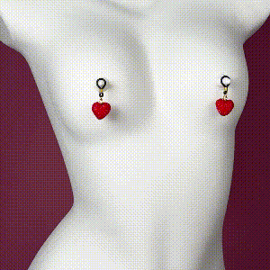 Luxe red crystal-heart nipple accents—glistening faceted hearts, sleek black silicone loops, and gold-wrapped details. Featherlight yet eye-catching, they feel comfy all night while adding bold, glamorous allure.