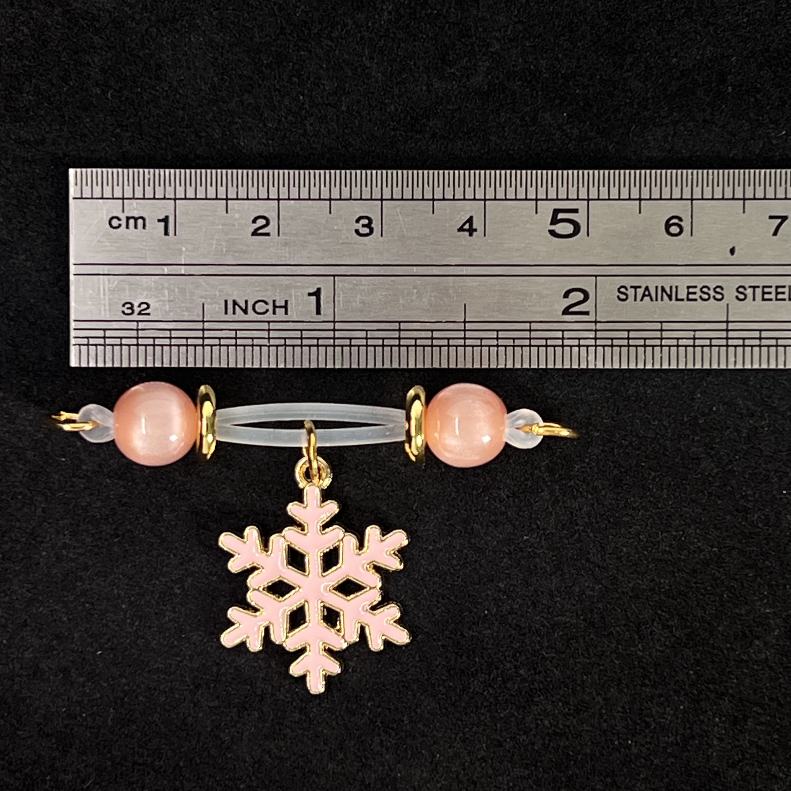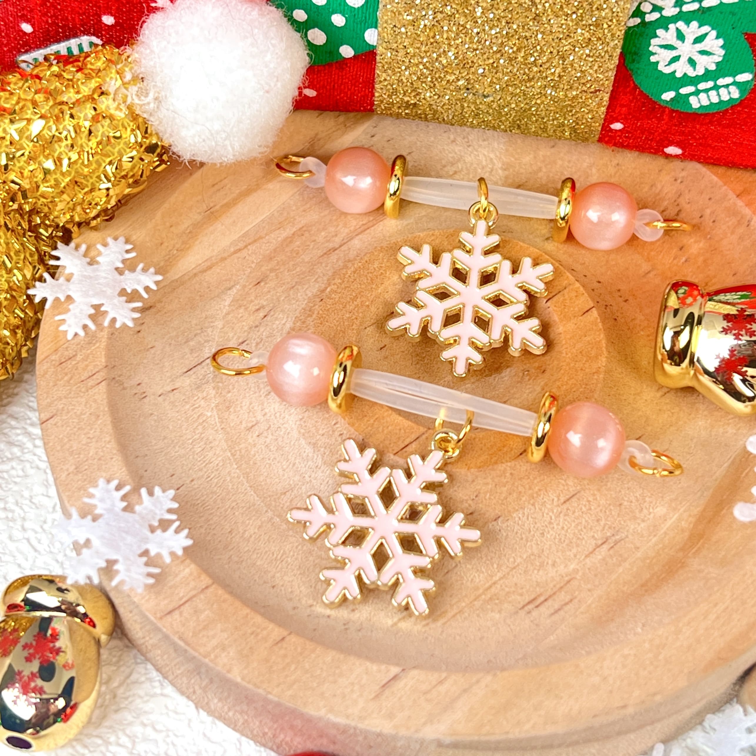 Pink beads paired with a pink snowflake pendant evoke a soft, elegant winter charm. The adjustable design enhances comfort, while clean lines and gentle tones create a refined, lightweight look—subtle, modern, and effortlessly sophisticated.