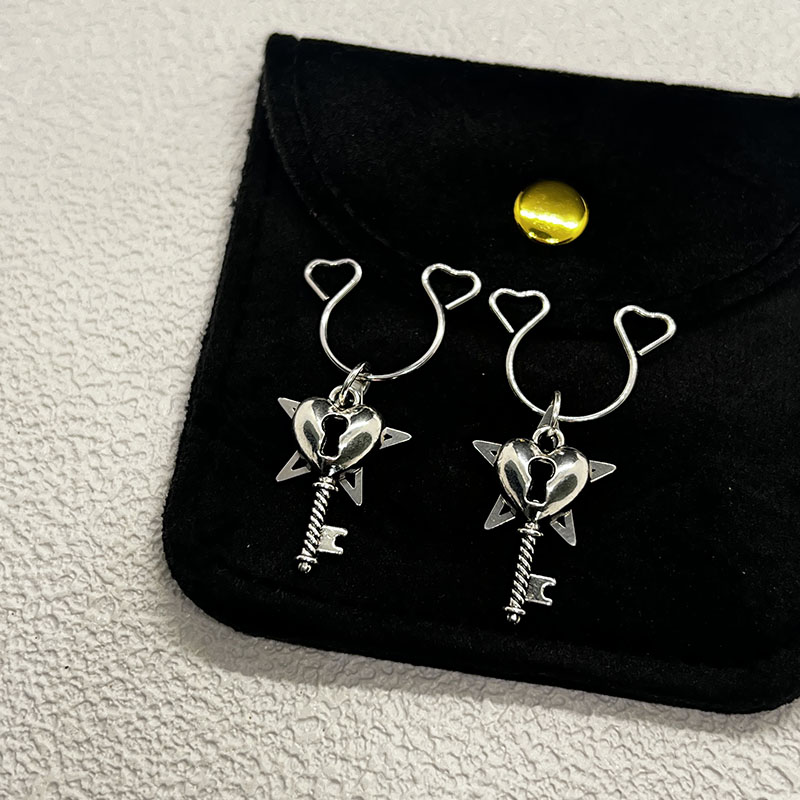 This adorable nipple clip features a double heart-shaped ear design paired with a heart-shaped key pendant, blending playfulness and cuteness with exquisite details. The metallic sheen of the alloy material provides a fun yet alluring visual experience. ✨